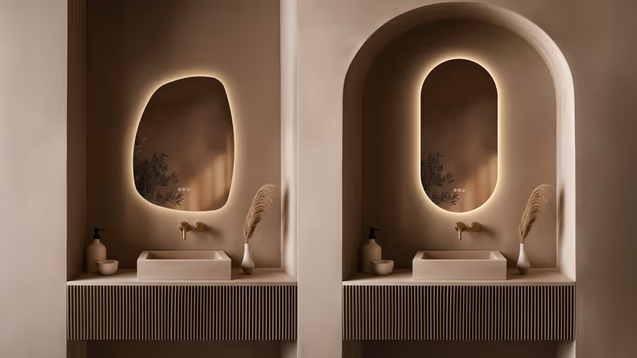 Origins Living mirrors and mirror cabinets add refined styling and practical features to luxury bathrooms.